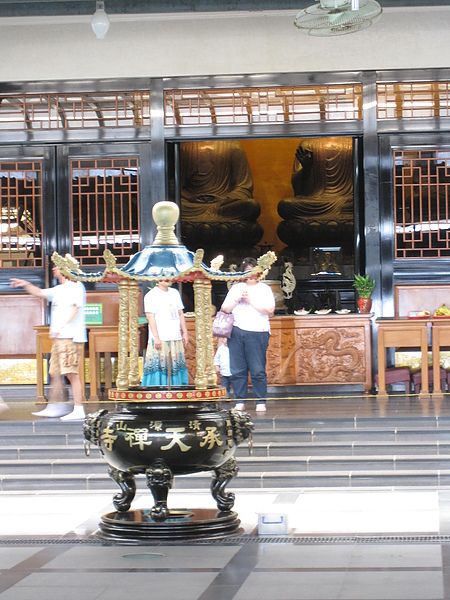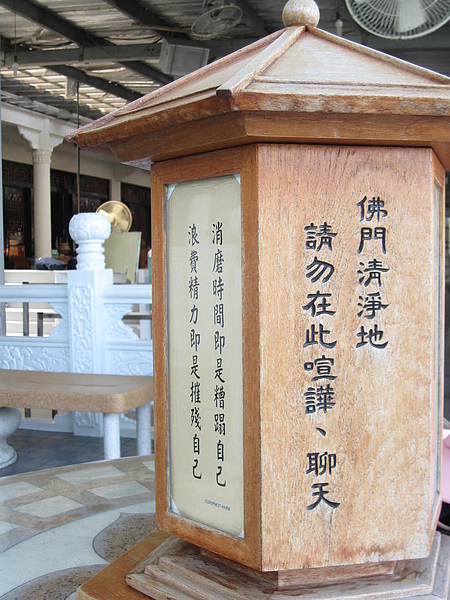 參拜之中,我發現到承天寺完全不會有一般寺廟煙霧迷漫的現象。由於寺內改善燒香的風俗,只在菩薩像前擺一隻大長香,香客可以自行捻一隻小香放在像前的香爐(不需點燃),寺方會統一處理。很有環保的概念,打破燒香的迷思,很好!